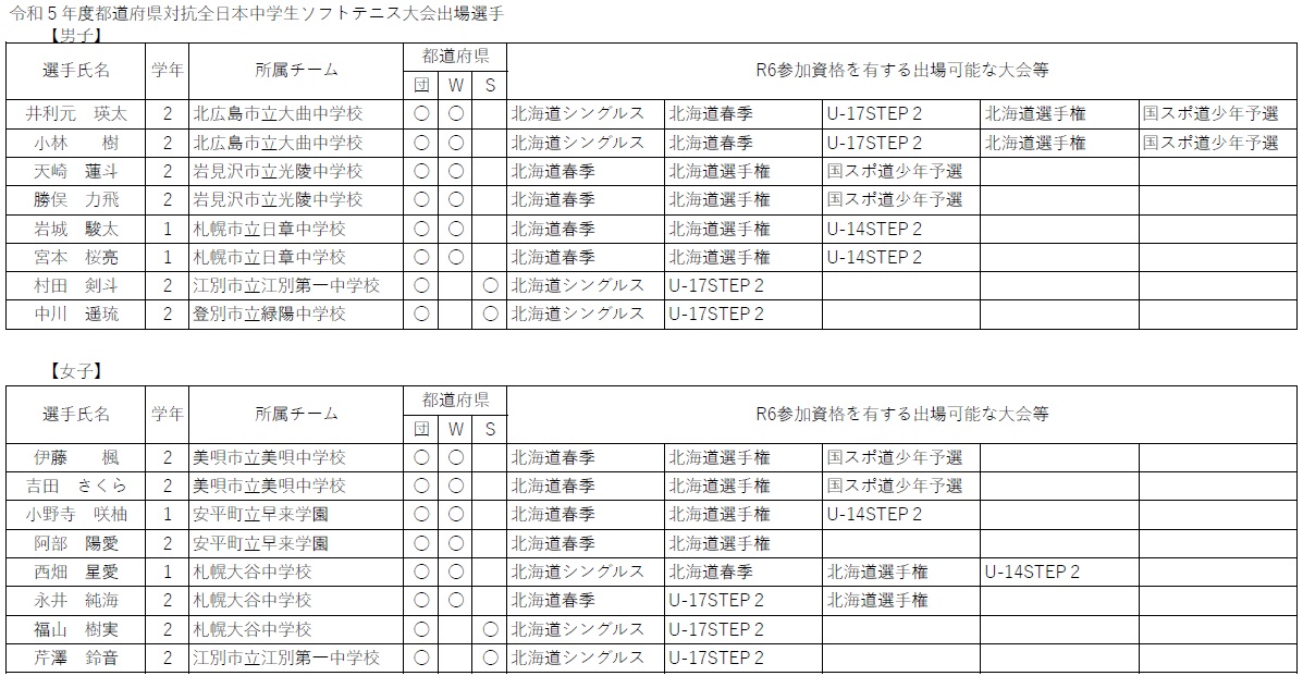 - 北海道中学生インドアソフトテニス研修大会男子の部・女子の部の要項を更新しました。